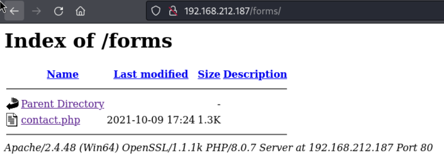 [####################] - 0s 20469/20469 146207/s http://192.168.212.187/forms/ => Directory listing