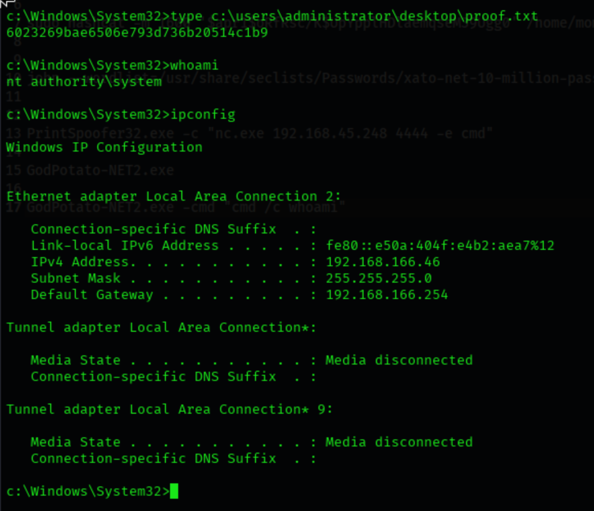 Nonostante il privilegio `SeImpersonatePrivilege` non riesco a usare `PrintSpoofer`, `GodPotato` ecc.