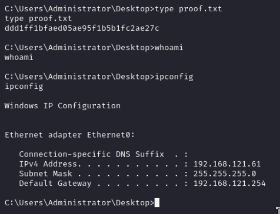connect to [192.168.45.172] from (UNKNOWN) [192.168.121.61] 49798
