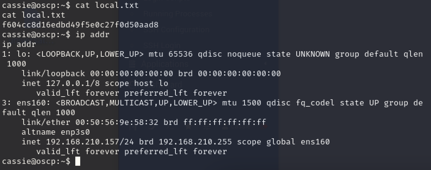 inet 192.168.210.157/24 brd 192.168.210.255 scope global ens160
