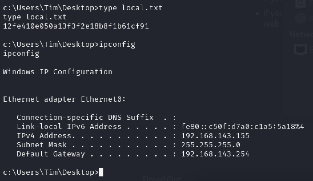 connect to [192.168.45.211] from (UNKNOWN) [192.168.143.155] 59214
