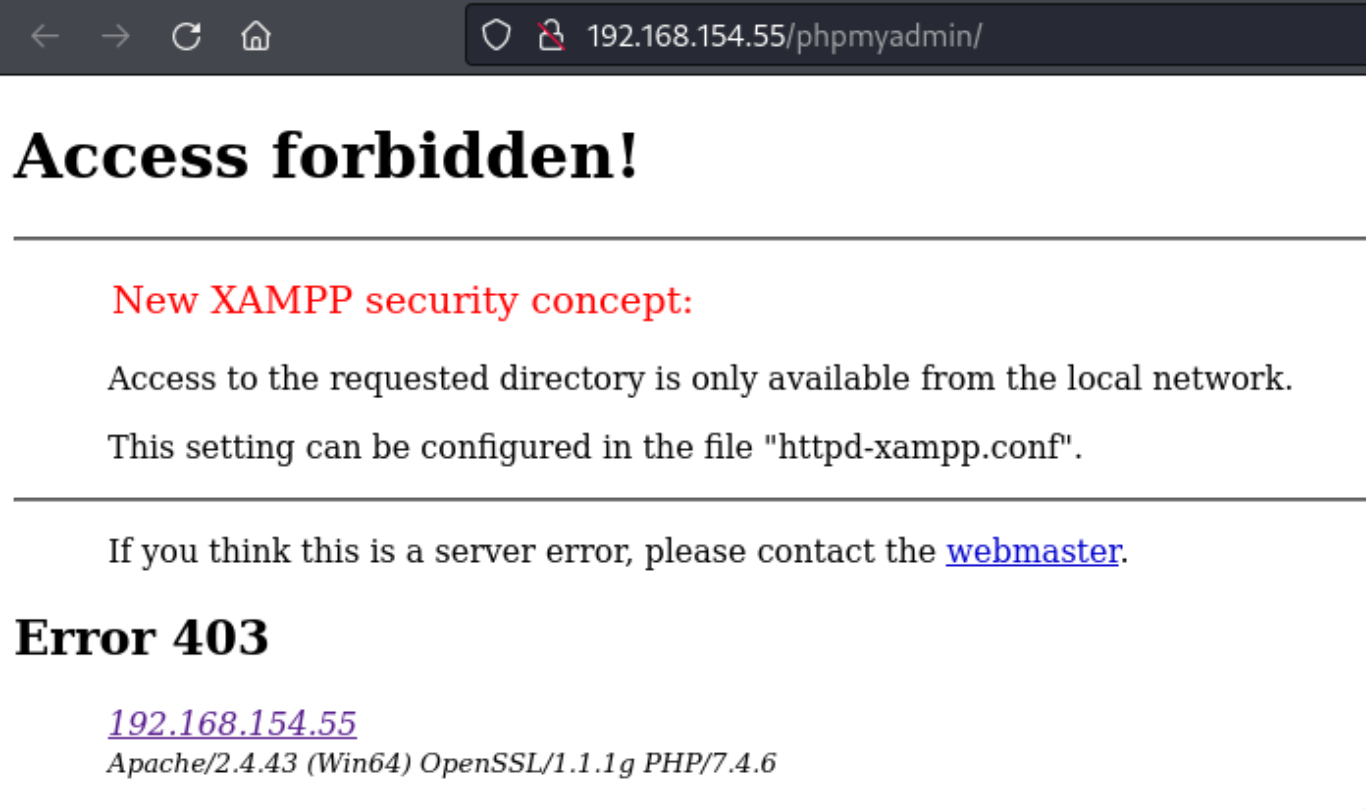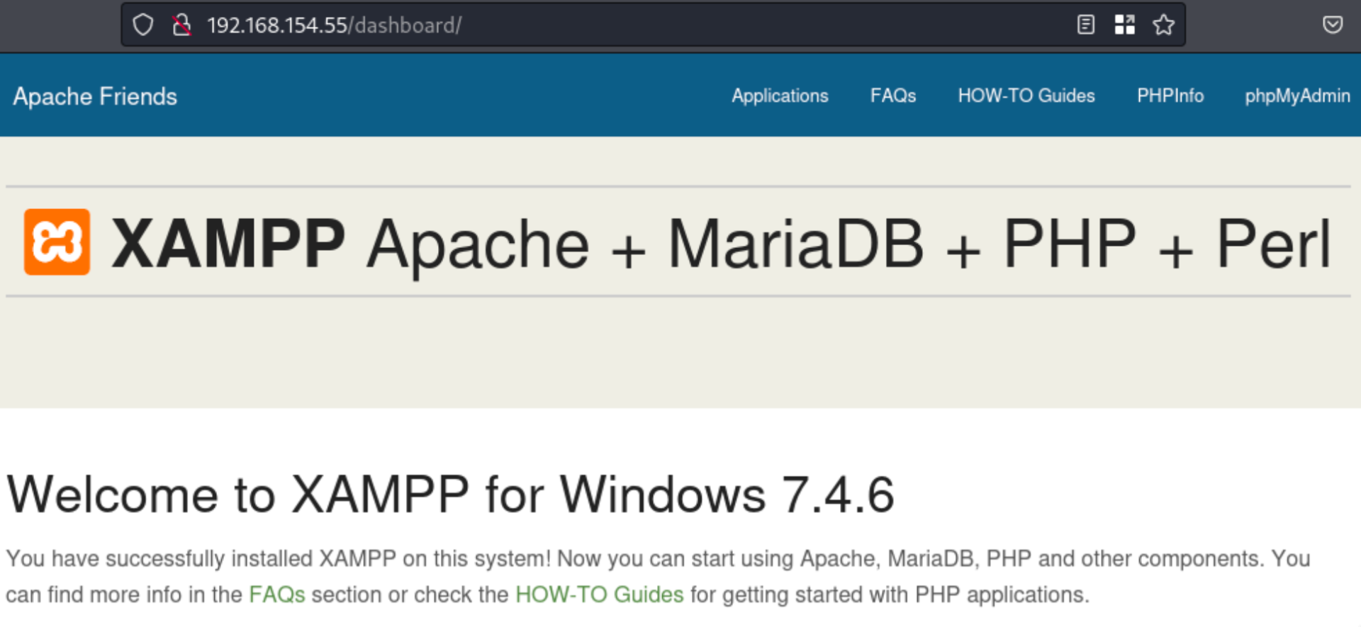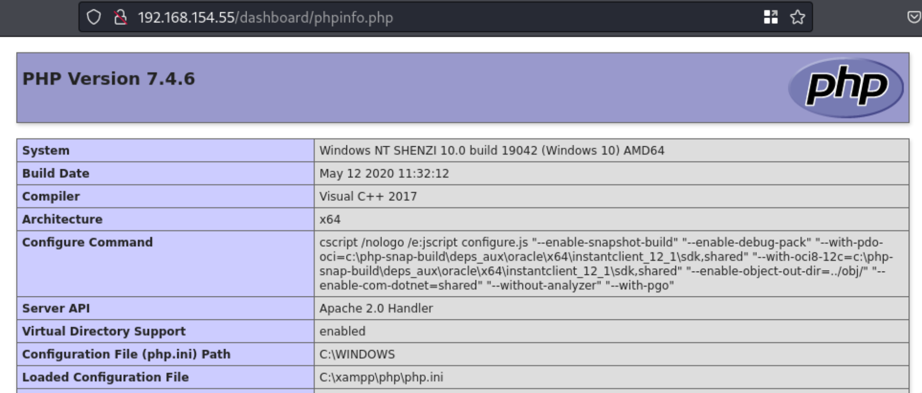 | 80/tcp | http | Apache httpd 2.4.43 ((Win64) OpenSSL/1.1.1g PHP/7.4.6) | HTTP |