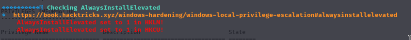 If these 2 registers are enabled (value is 0x1), then users of any privilege can install (execute) *.msi files as NT AUTHORITY\SYSTEM.