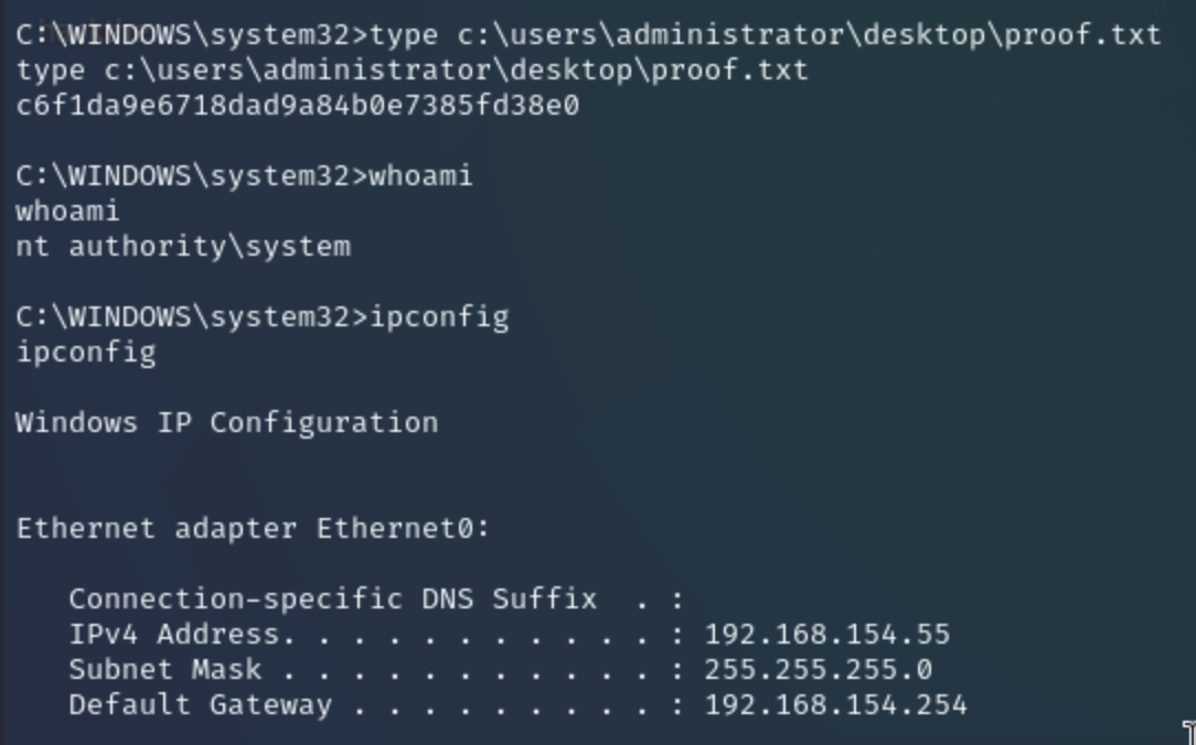 E si apre la shell come SYSTEM sul listener in ascolto: