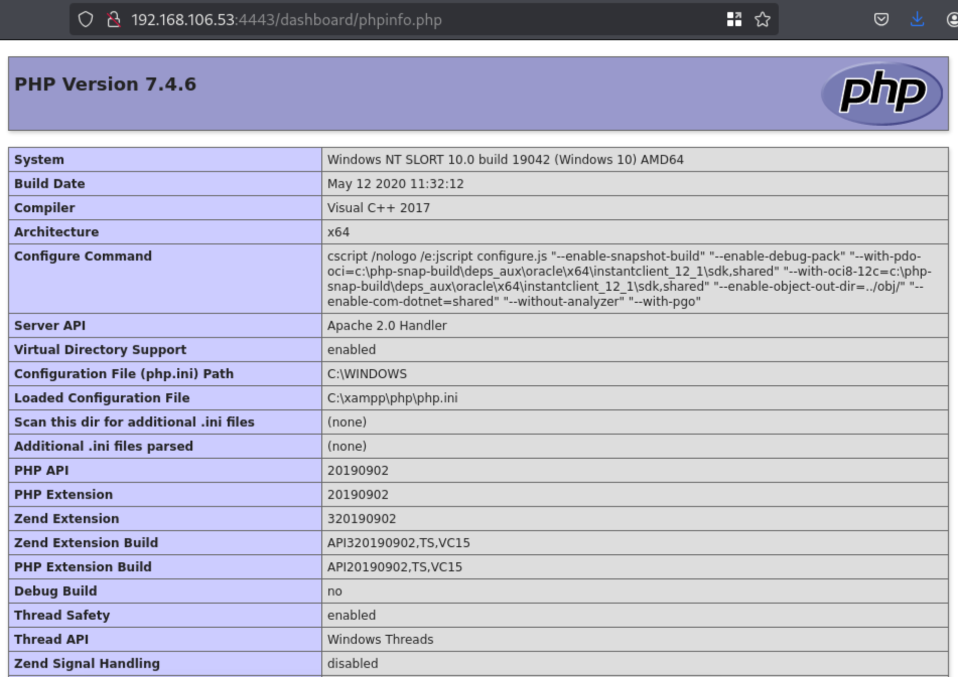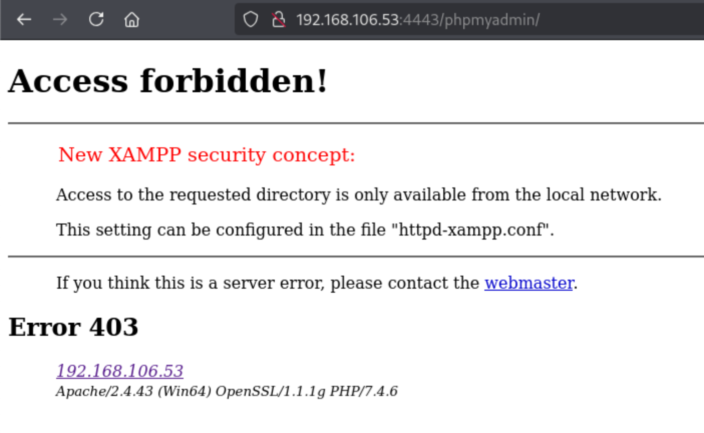 4443/tcp open http Apache httpd 2.4.43 ((Win64) OpenSSL/1.1.1g PHP/7.4.6)