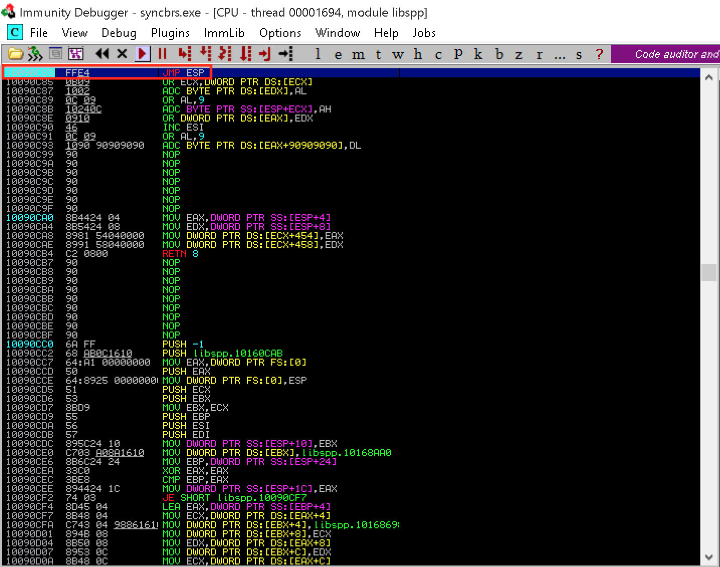 - Choose a correct return address instruction such as JMP ESP (or a different register) to redirect the execution flow to the payload.