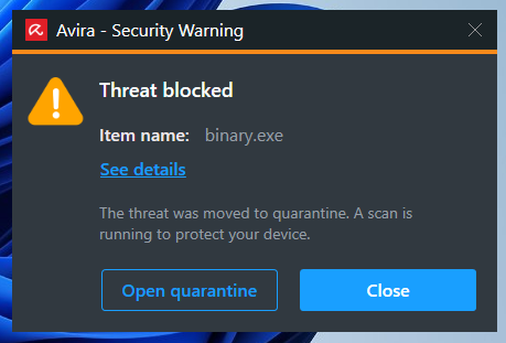 Since Shellter obfuscates both the payload as well as the payload decoder before injecting them into the PE, Avira's signature-based scan runs cleanly. It does not consider the binary malicious.