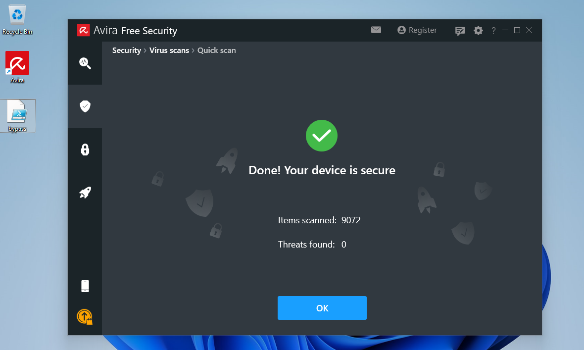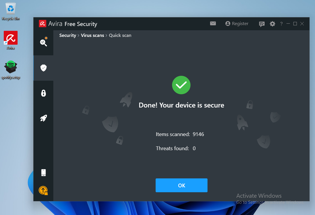 Next, we will transfer the backdoored Spotify installer over to the target Windows 11 client and launch an Avira Quick Scan as we did previously.