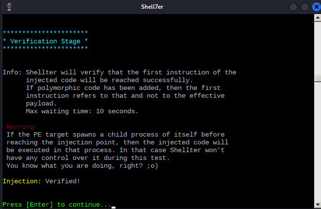 Figure 13: shellter verifying the injection
