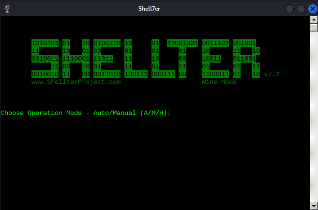 For the purposes of this example however, we will run Shellter in Auto mode by selecting A at the prompt.