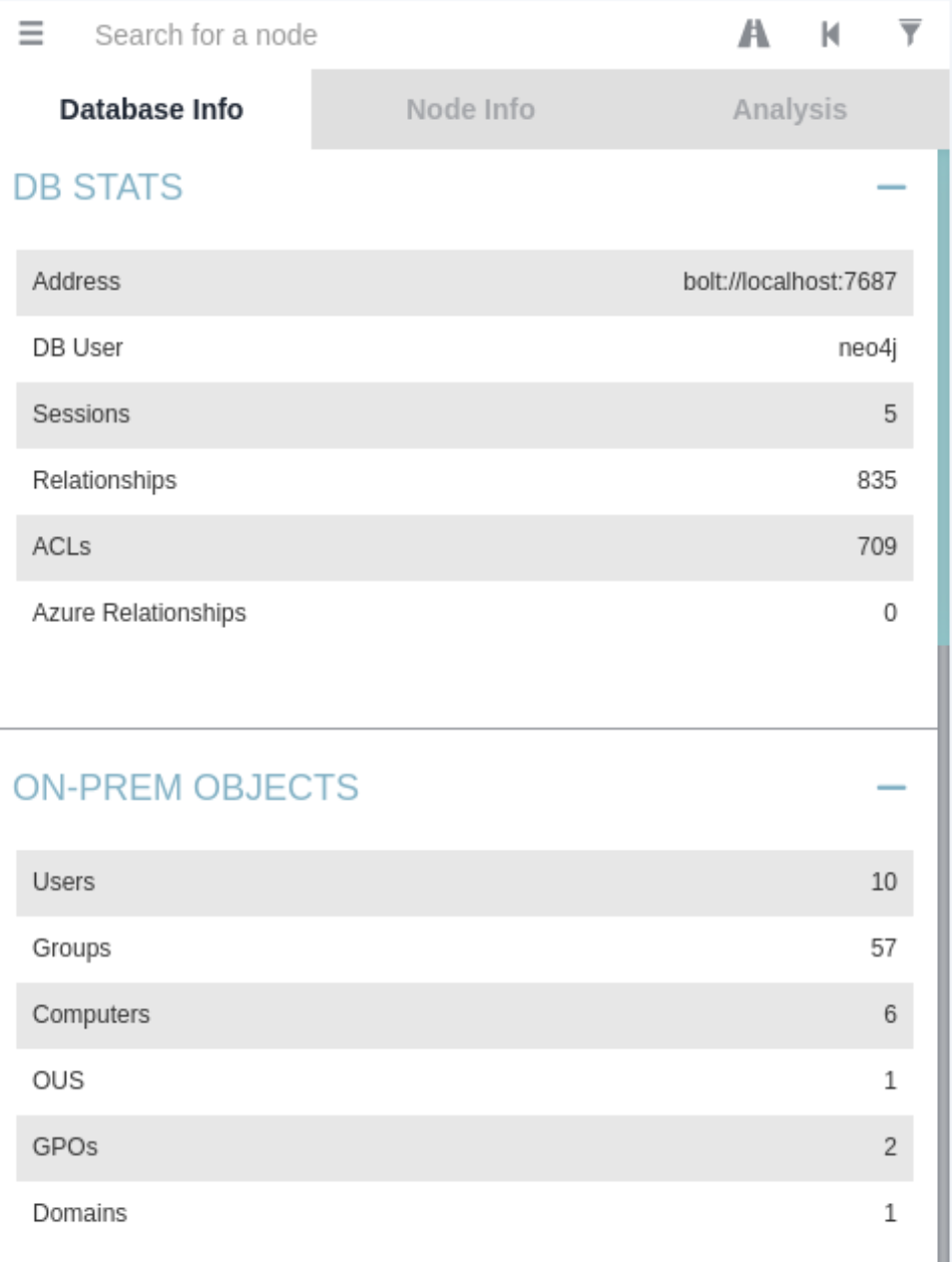 Once we have changed the password, we can authenticate to the database and run our own queries against it. However, since we haven't imported any data yet there isn't much we can do and we'd rather allow BloodHound to run the queries for us.
