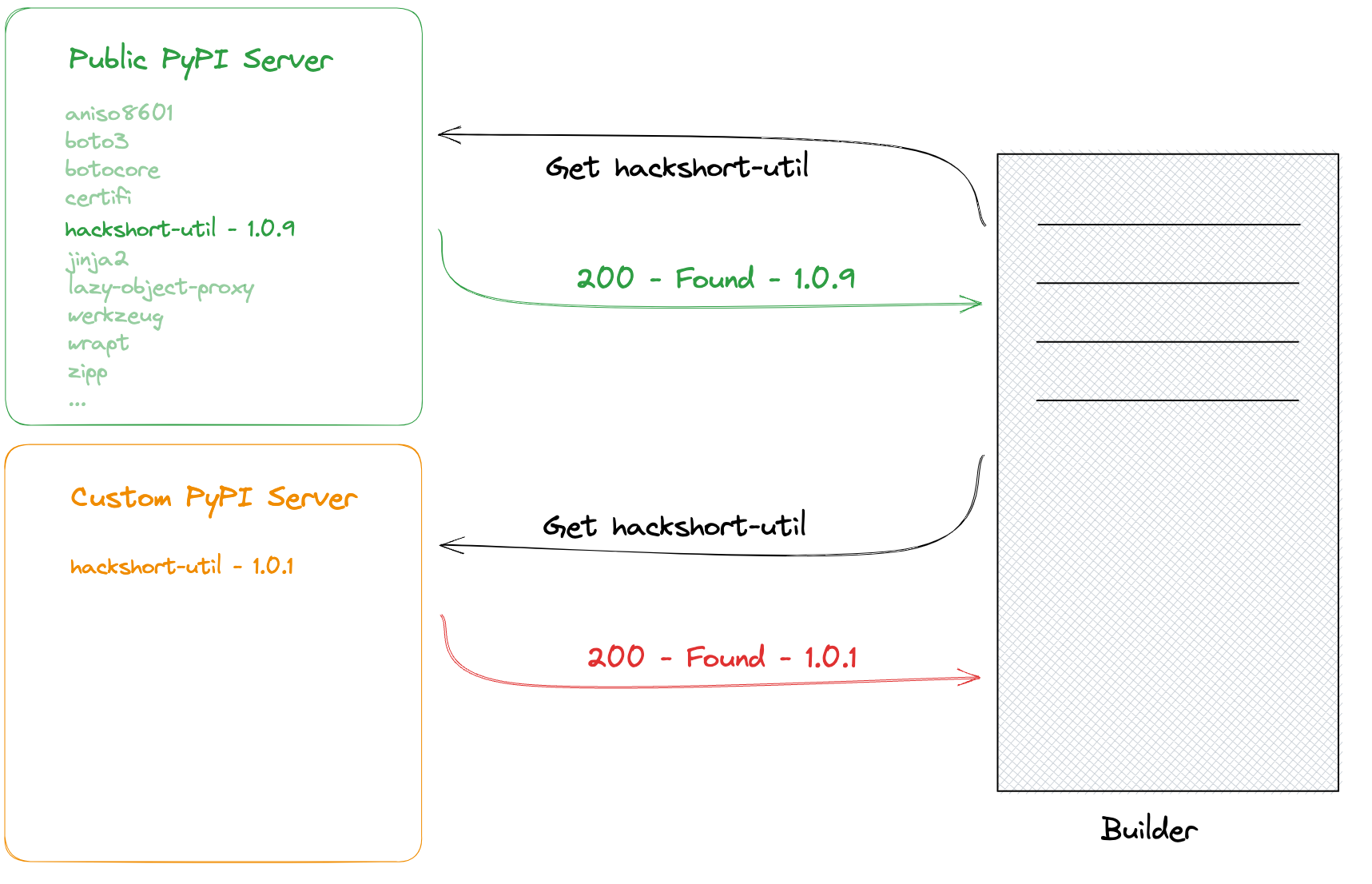 In this module, we'll find public info referencing a dependency missing from the public repository. We'll exploit this by publishing a malicious package, which will be downloaded by the builder, allowing our code to run in production.