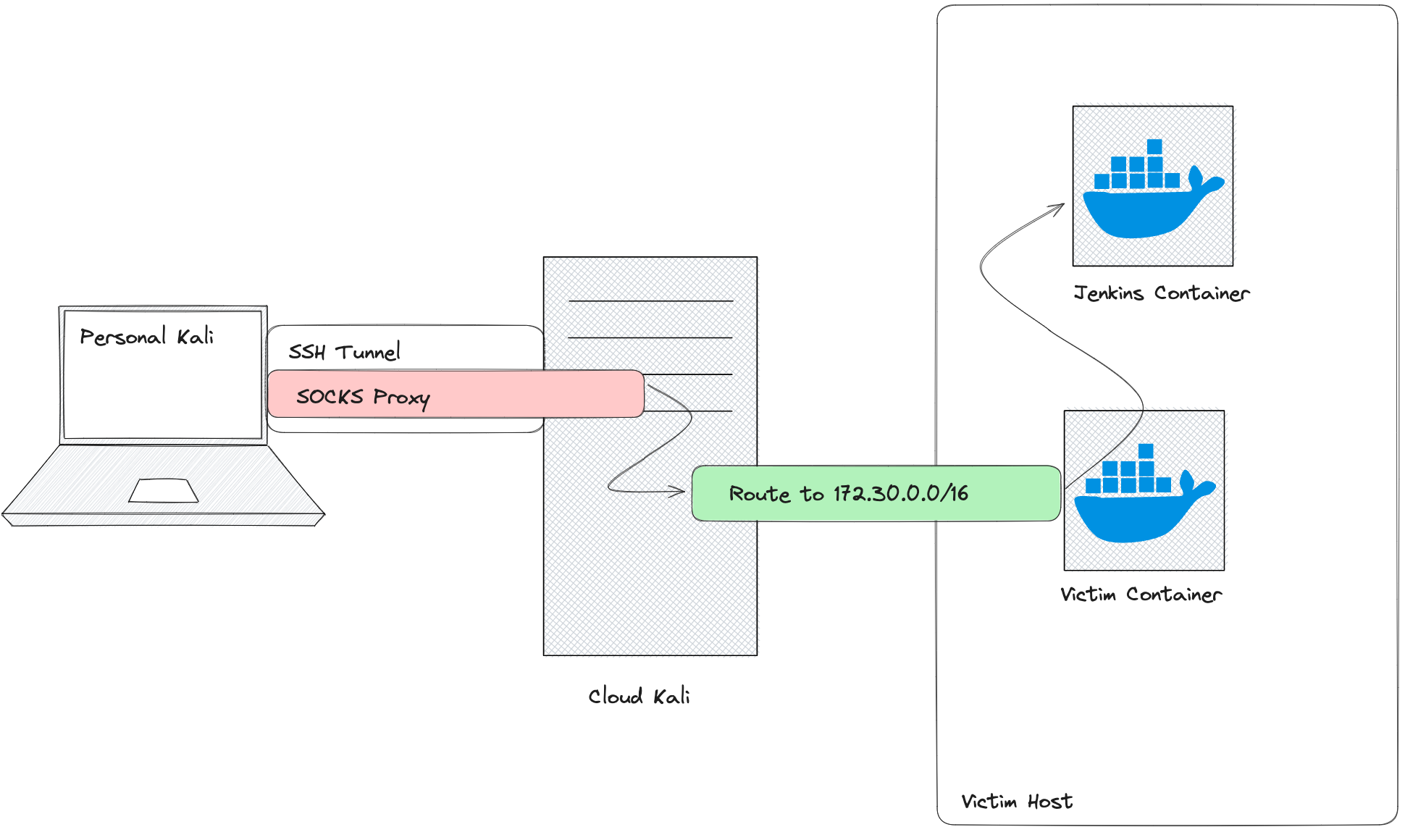 Once in production, we'll scan the network, discover more services, and tunnel into the automation server. There, we'll create an account, exploit a plugin vulnerability to get AWS keys, and continue until we find an S3 bucket with a Terraform statestate file containing admin AWS keys.