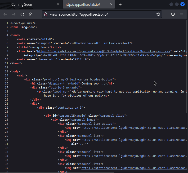 This will provide us with the HTML of the page where we can search for the AWS credentials.